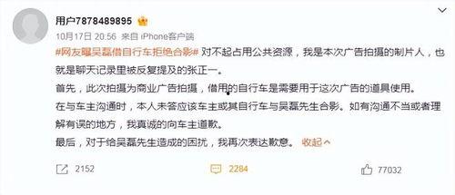 借自行车事件一出,网友们纷纷发表了自己的看法。有人表示:“吴磊这波操作太圈粉了,明星也能这么接地气,好感度瞬间上升!”也有人调侃道:“这自行车借得也太随意了吧,明星就是明星,连借自行车都这么有范儿!”